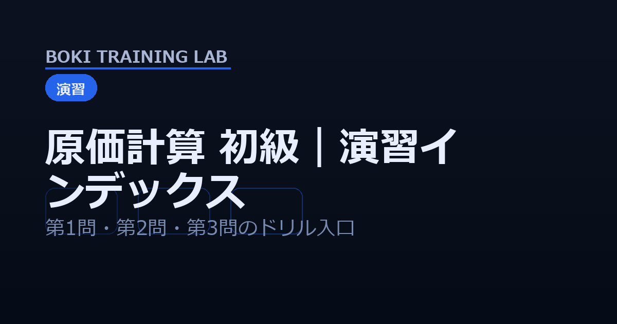 原価計算初級の問題演習・用語集・学習ガイドをまとめた導線集です。演習→用語→解説の順に進めながら力を伸ばしていきましょう。